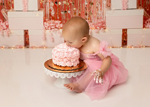 It seems like just yesterday I was taking Bristol's newborn photos! Somehow, she is already a year old! Her mom requested lots of pink and glitter, and I think her session came out great! We really didn't even need all the glitter, Bristol provided lots of shine all on her own! She is such a happy baby, and she obviously LOVED her cake and smash in the baby tub!