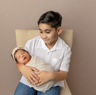 When Baby Grace came into the studio with her head full of beautiful hair, I knew it was going to be a great day! Her mom requested neutrals, and she sure looked beautiful! She gave me lots of sleepy shots but I was also able to capture some fully awake photos, too. It's not easy to get newborns to look straight into the camera, but she nailed it! Big shout out to her cutie pie big brother and big sister as well! They did SUCH a great job and they both clearly adore their new sister!